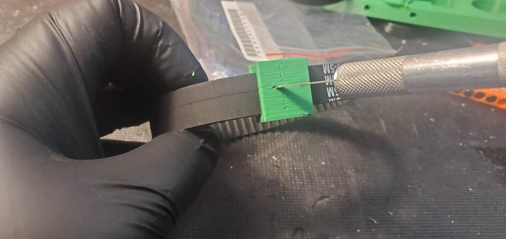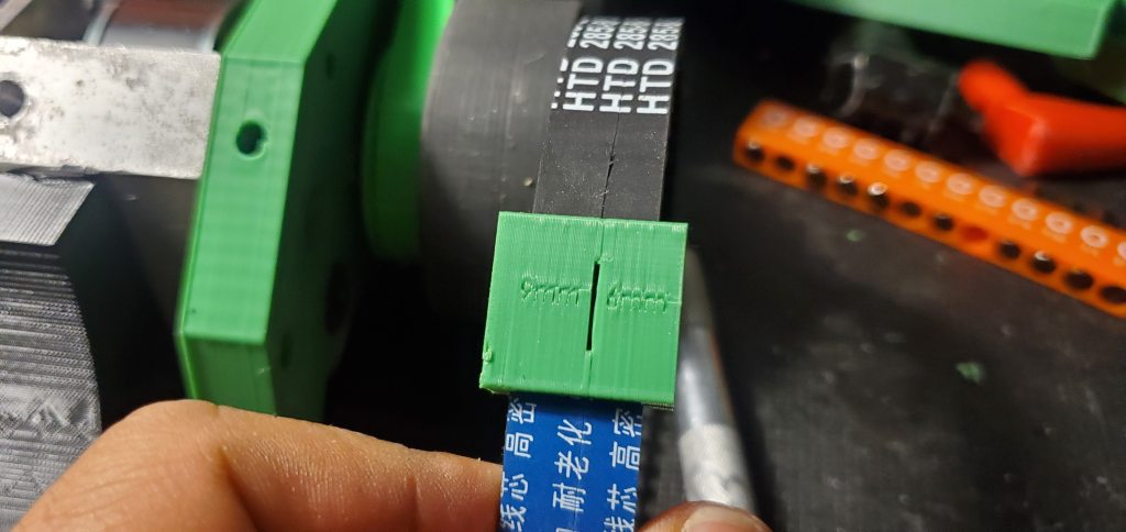 To complete the 4WD, real belts were required. Fortunately the 5mm HTD 285mm drive belts I selected were found on Amazon and arrived next-day. Since they were 15mm belts and I planned for 9mm a small jig was printed for a hobby knife to cut the belt at the right width. Because the belts had reinforcing strands alongside the neoprene rubber it took a couple of passes and some work to get the blade through but it worked! Will definitely keep this trick in mind for the future in other emergencies.