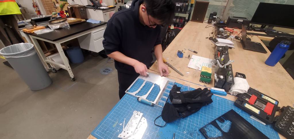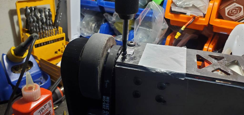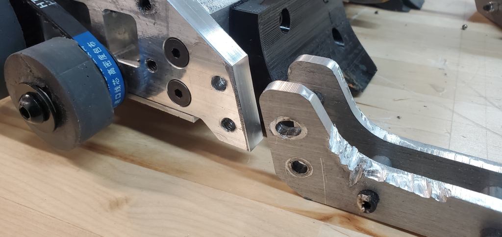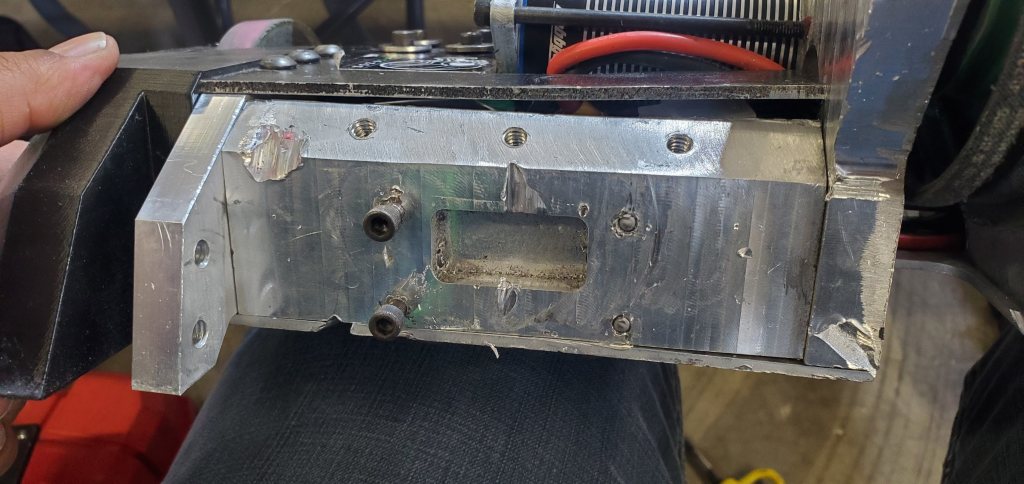 The baseplate of the robot was gradually bent back through a combination of squishing in the vice, hammer, and some work on NHRL’s hydraulic press. Big thanks to the NHRL team for that workshop, its a super convenient lifesaver!